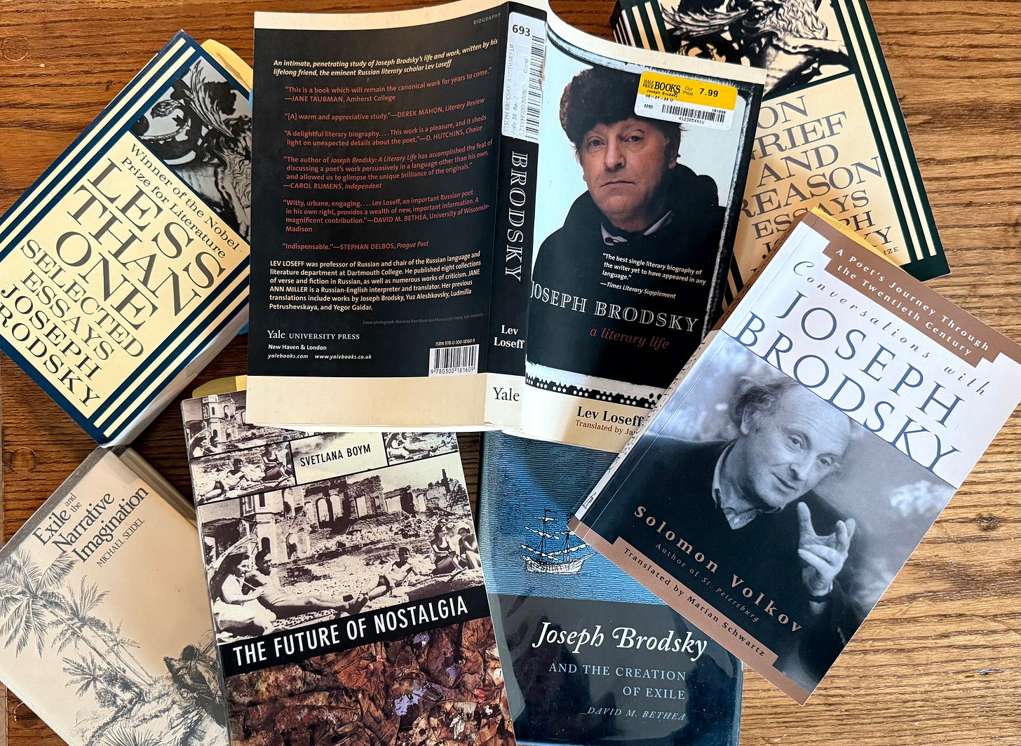 During our time together, I spoke very little because I could not find the words to pretend that I did not feel that loss as my own, that I felt fine. To be sure, I’m not freed from the occasional longing for what I once had and for who I had once been perhaps no less than Brodsky felt for those with whom he had bonded. Boym writes about Brodsky’s experience after he returned to Leningrad from his internal exile in the far north: “In retrospect, this little kitchen community might appear to be endearingly heroic, but also rather claustrophobic. The poet outgrows this imagined community, but he is frequently homesick.” Or, as his biographer Lev Loseff writes in Joseph Brodsky: A Literary Life, “Brodsky went into exile one poet and came back two years later a very different one. The change was not instant, but it was certainly quick.”